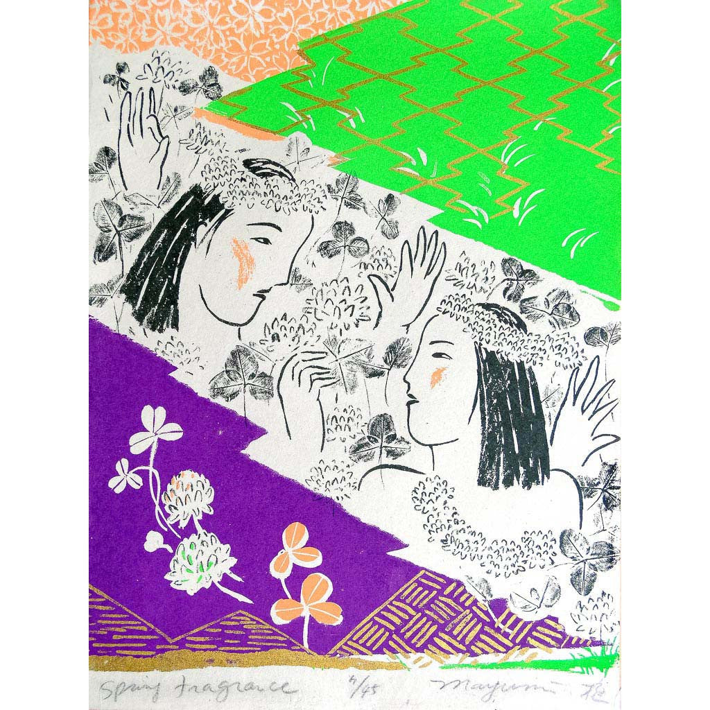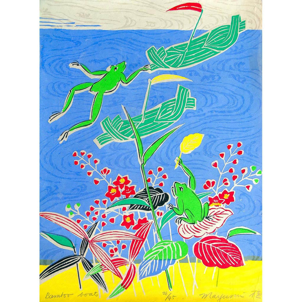 My childhood was spent in a timeless, cosmic playground on the outskirts of Tokyo after World War II. After the war, my parents were so busy trying to find food for us that we children were left alone. We did not have toys to play with, but we created a lot of games. Girls picked clover flowers and made garlands. We flew our kites, made little bamboo boats to float down the river, and made snow bunnies in the winter. Although it was a difficult time, it was still a time of innocence and I was quite happy. Only later when I was living in the United States as a person from a foreign culture, did I appreciate these special moments and how I had fun as a child in 1950s Japan.